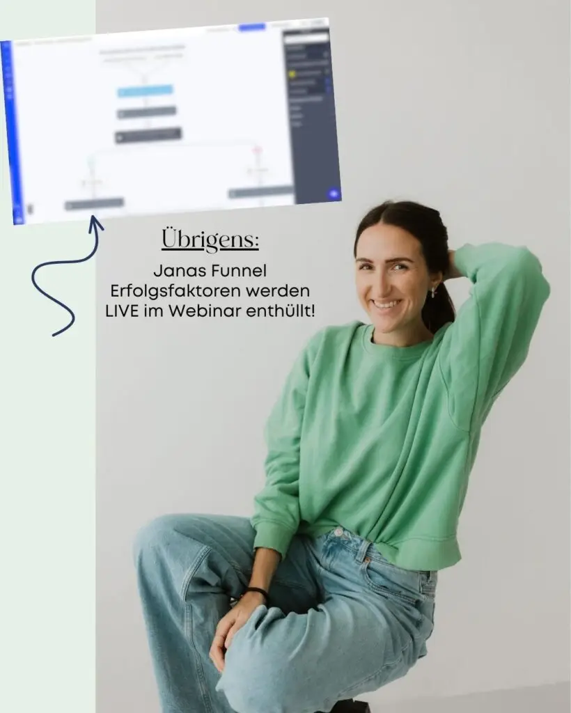 Jana entschied sich für einen Evergreen Funnel, der den gesamten Verkaufsprozess automatisiert. Von der Webinar Teilnahme bis zum Kauf ihres Produkts – alles läuft jetzt automatisch, ohne dass sie monatlich live gehen muss.